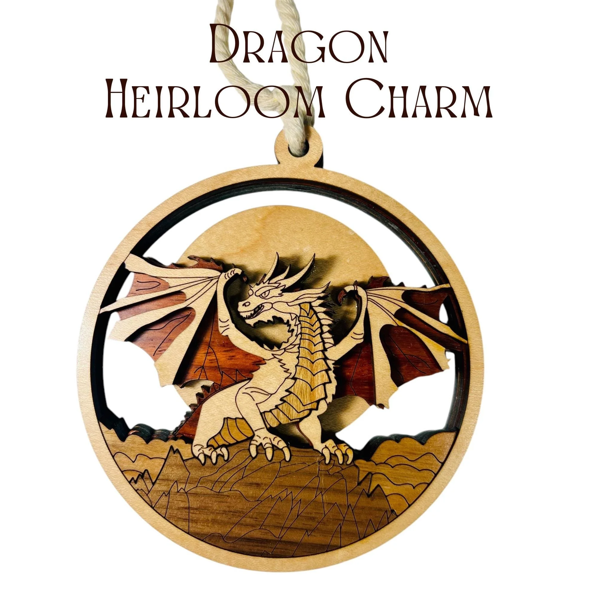 3D Layered Dragon Heirloom Charm | Dragon Ornament | Beautiful Variety of Woods creating a Unique Gift for that Special Someone. Perfect Farmhouse / Fantasy Decor with this Laser Cut & Hand-Crafted Heirloom Charm.
